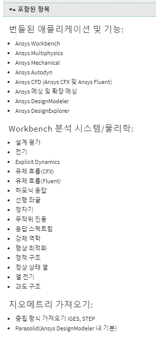 학생용 라이선스 사용 기한은 12개월(갱신가능)이고 구조해석이나 유체해석 각각 크기에 제한이 있다.