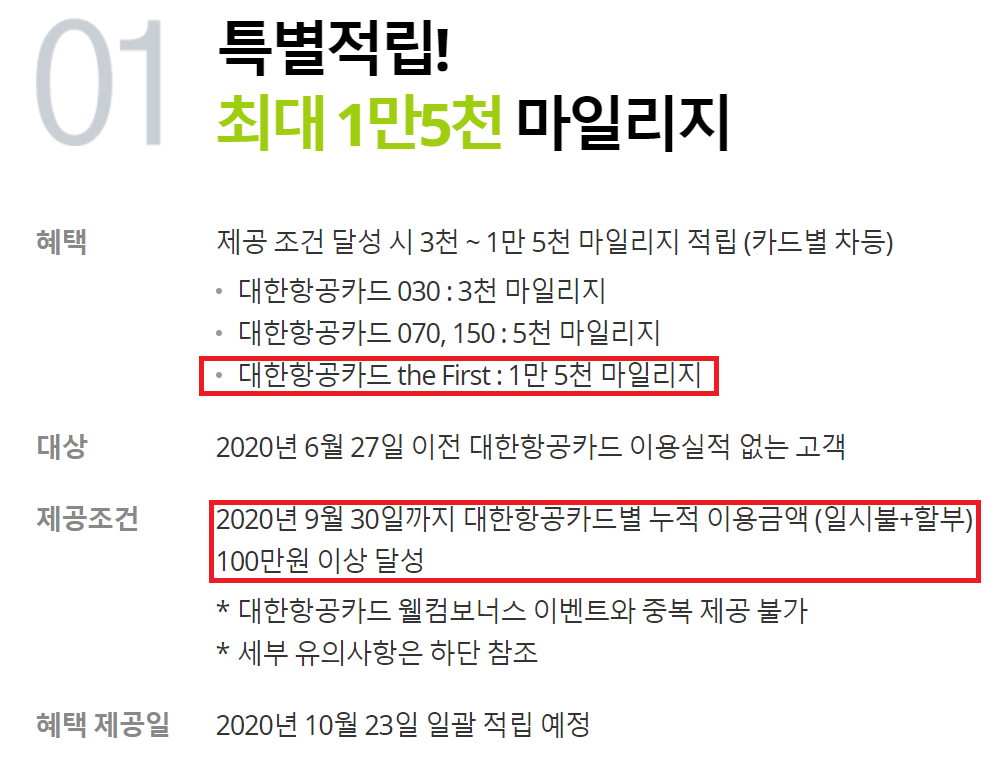2. 2020년 09월 30일까지 100만 원 이상 사용 시,