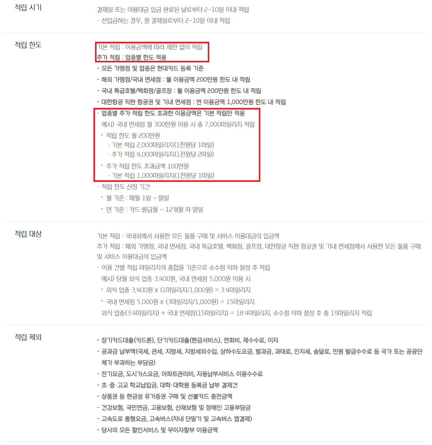 - 연회비 기준 : 50만 원 / 35,000 마일리지 = 14.29원/마일리지