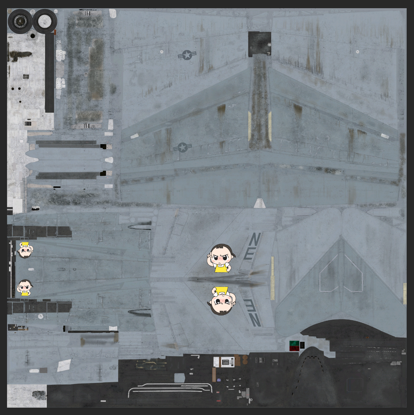 이 상태에서 사진이나 그림을 붙여 넣거나 원하는 디자인으로 편집하면 되는데, 요즘 개인적으로 라이언보다 더 귀여운 카카오톡의 '봄이' 이모티콘을 캐노피 뒤쪽과 수직날개 양쪽, 그리고 랜딩기어 쪽에 각각 넣어보도록 하겠다.