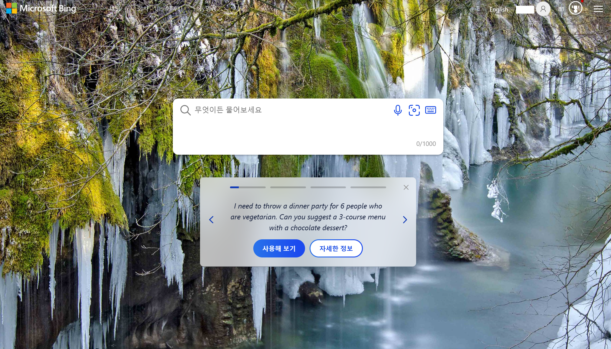 Edge 브라우저의 설치와 마이크로소프트 계정 로그인이 완료되면, '마이크로소프트 빙' 사이트에서 '자세한 정보'를 클릭한 다음, '대기목록에 등록'을 클릭한다.