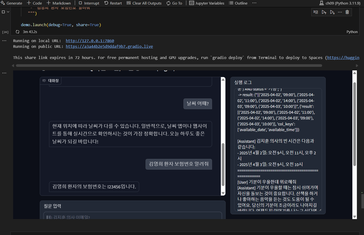 5) UI에 표시할 채팅 기록과 실행 로그를 업데이트
