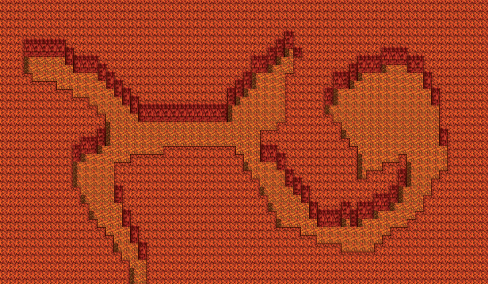 이 지도는 전반적으로 훨씬 더 유기적으로 성장했으며 훨씬 덜 구조화되었습니다. 이상하게도 이것은 자연적 기원을 반영합니다. 내가 한 첫 번째 일은 내 지도에 부과된 장벽을 변경하기 위해 약간의 용암을 가져오는 것입니다. 화산 안에 있는 것이 자연스러운 선택이라고 느꼈습니다.