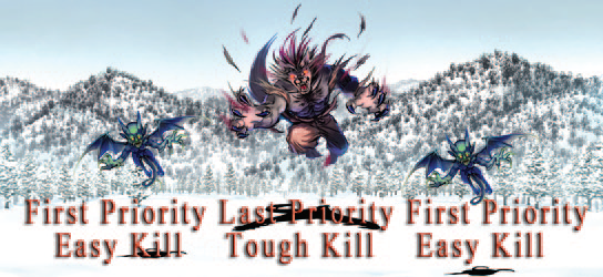 아래에서는 Wendigo가 더 큰 위협이지만 두 임프가 더 빨리 죽이기 때문에 우선순위를 정하겠습니다. 다양성은 플레이어가 자신의 행동을 통해 생각하도록 요구하는 여러 필수 접근 방식을 만듭니다.