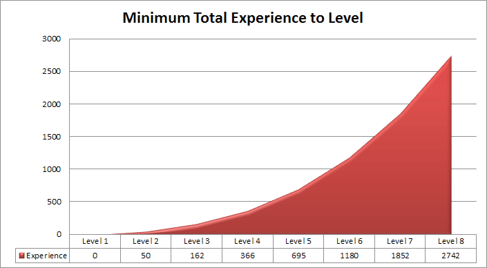 경험 곡선은 각 레벨에 도달하는 데 필요한 총경험치입니다..
