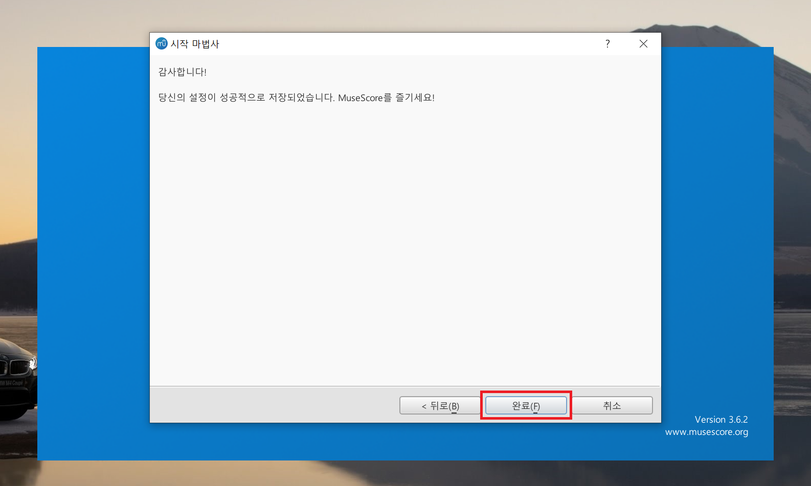 프로그램 다음을 클릭하고 완료를 클릭 프로그램이 시작