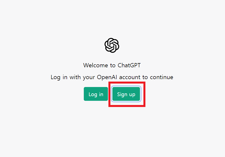 Sign up 클릭해서 ChatGPT 계정을 생성하는데, 직접 이메일을 입력하는 방법과 구글 계정으로 가입을 하는 방법이 있다. 여기에서는 'Countinue with Goole'를 클릭해서 구글 이메일로 가입을 진행한다.